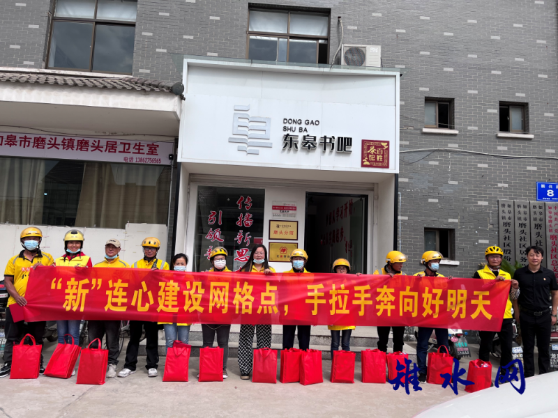 红新网格添活力。“我们一定不辱使命,把网格员工作和本职工作有机结合,认真履职尽责,努力在推动基层治理,服务民生等方面发挥自身作用。”这是磨头社区流动网格员的宣言。磨头社区以“党员联系户”为载体,把支部建在网格上,着力打造“1+4+N”网格工作队伍,即由磨头社区党总支书记担任总网格长,4名社区“两委”成员担任各分片网格长,N名暖“新”骑士和党员担任“流动网格员”,构建起横向到边、纵向到底,全面覆盖,无缝衔接的基层服务管理工作体系。磨头社区在一楼打造了红“新”驿站,驿站内提供了储备充电宝、雨伞、医疗急救用品等物品,配置了休息桌椅、饮水机等设施,为“流动网格员”提供暖心服务。