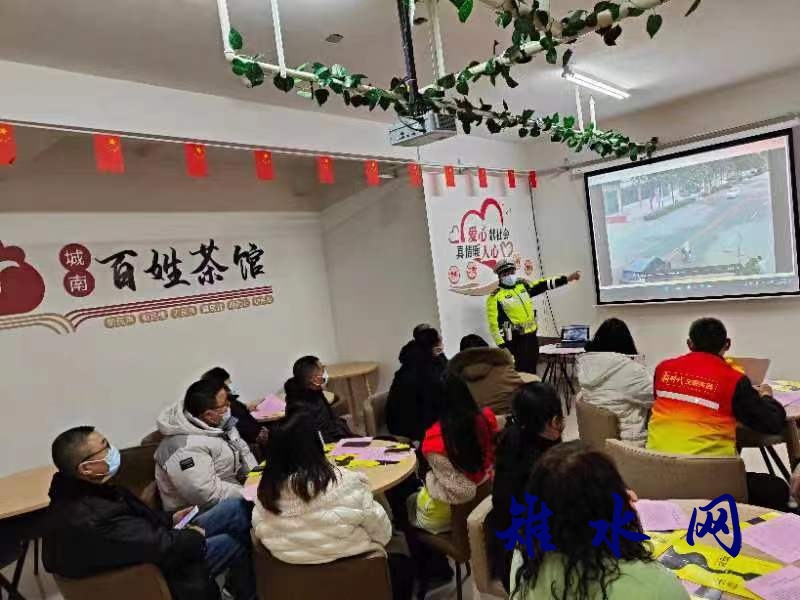 新如皋报讯 12月2日是第十一个“全国交通安全日”。为扩大交通安全普法知识面,进一步提高居民的交通安全意识,增强知法、守法、懂法的自觉性,12月1日,如城街道城南社区新时代文明实践站要求如城交警中队走进百姓茶馆,开展“全国交通安全日”主题宣传活动,倡导广大人民群众“文明守法 安全回家”。