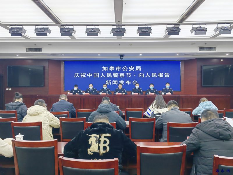 新如皋报讯 1月9日上午,如皋市公安局举行“庆祝中国人民警察节·向人民报告”新闻发布会,向新闻媒体通报了2022年公安机关在打击违法犯罪、维护社会稳定、服务经济发展、保障群众安居乐业等方面取得的工作成效,并就有关问题回答记者提问。如皋市公安局党委副书记、政委邢新华及政治处、指挥中心、治安、交警、刑警等部门负责人出席发布会,如皋市公安局党委委员、政治处主任章春建主持会议。