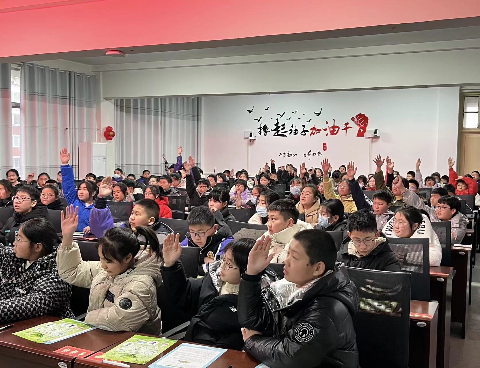 课堂上,通过播放环保宣传片、环保知识讲解、互动小游戏及赠送科普系列丛书等多种活动方式,让学生充分了解当前地球面临的环境危机以及环境污染带来的危害等相关生态环境保护知识,引导孩子们思考生活中存在的污染环境、浪费资源等不良现象,启发孩子们联系生活实际做节能小达人、环保小卫士,从身边点滴小事做起。