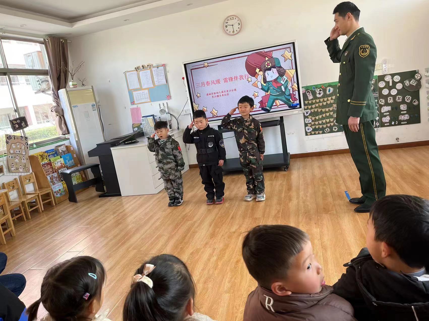 新如皋报讯 2023年3月5日是第60个“学雷锋”纪念日,为弘扬雷锋精神,提高居民社会责任感,3月2日上午,如皋市长江镇长青社区联合长青沙幼儿园开展了“讲雷锋风采,展时代新风”活动,社区邀请退役军人为小朋友们讲解雷锋叔叔的生平事迹和雷锋纪念日的来历,感受雷锋叔叔刻苦学习、热心助人、忘我劳动、无私奉献的精神品质,激发小朋友们勤于学习、乐于助人、甘于奉献的良好品质,让他们明白我们在为别人服务的时候,也有许许多多的人在为我们服务,帮助别人就是帮助自己的道理。最后,老师带领学生们合唱了雷锋之歌,向退役军人学习敬礼、踢正步,向军人致敬。小朋友们通过学雷锋课堂,让志愿的种子在稚嫩的心中生根发芽,弘扬了“人人学雷锋、天天学雷锋、时时有雷锋”的良好文明风尚。