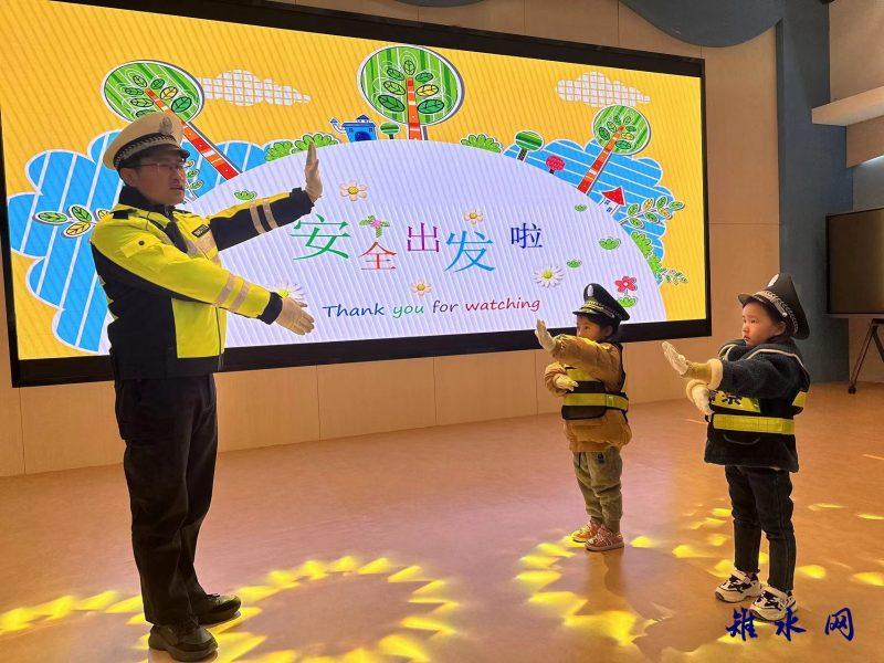 极具亲和力的交警叔叔还采取现场互动的方式,利用交通指挥小游戏进一步调动孩子们的积极性,增强孩子们对交通法律法规的记忆,孩子们纷纷跟随交警叔叔学习如何指挥交通。