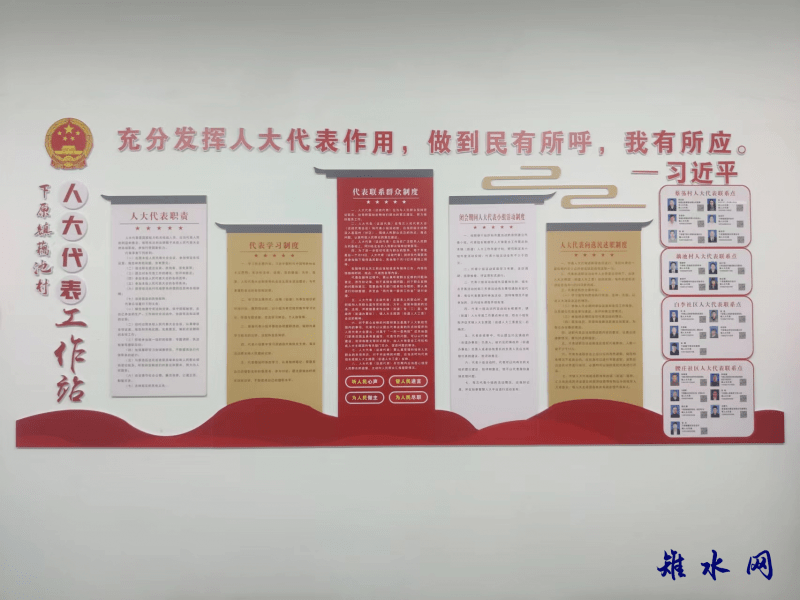 聚焦平台提档,推进阵地规范化建设。下原镇人大坚持为代表履职创造更好条件,按照市人大统一部署,重点推动代表履职平台提档升级。融入“网格化”管理理念,高标准建成1个人大代表之家,4个人大代表工作站和15个人大代表联系点。各“家站点”均选优配强召集人和联系人,人大代表之家、人大代表工作站均按照“六有”高标准打造,同时结合全镇以及各片区人大工作特点,明晰了各板块人大工作主线,并对活动计划、代表风采等常态化进行展示,打造了“原满无忧”“醉美花园”“民心藕联”等工作品牌;各村居“人大代表联系点”采取灵活机动的方式组建,逐村研究确立代表活动形式与计划,确保各个层面、各个区域人大代表履职有平台、工作有阵地、活动有场所。
