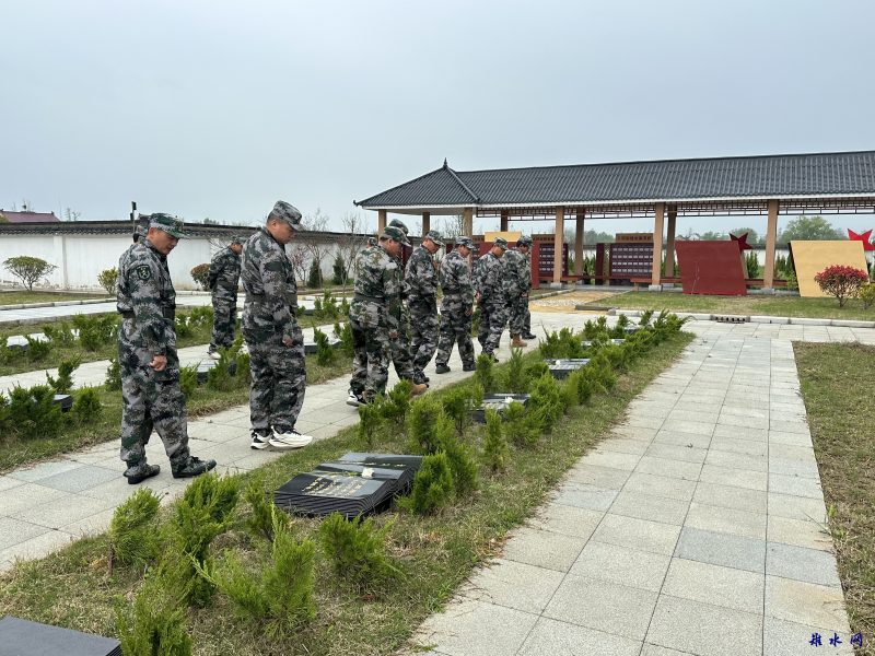 退役军人缓步而行,在烈士墓穴前驻足,表达对革命先烈英气长存、忠魂不灭的敬仰之情。