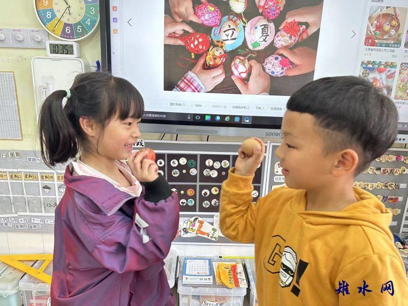 活动现场,老师们通过图片和视频介绍了立夏的由来,讲述了立夏有尝新、吃蛋、称人等传统习俗。孩子们用水彩笔、水粉等绘画材料绘制了属于自己的独特彩蛋图案。在斗蛋环节,大家纷纷拿出自己精心挑选的“蛋宝宝”,各自持蛋,尖者为头,圆处为尾,蛋头撞蛋头,蛋尾击蛋尾,两两比拼,在激烈的欢呼声中,“蛋王”们纷纷出炉。接着孩子们在快乐中品尝蛋的美味与营养。