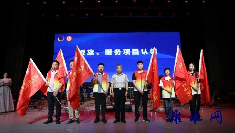市委统战部常务副部长、市侨办主任宗爱君为镇(区、街道)侨界志愿服务分队代表授旗。