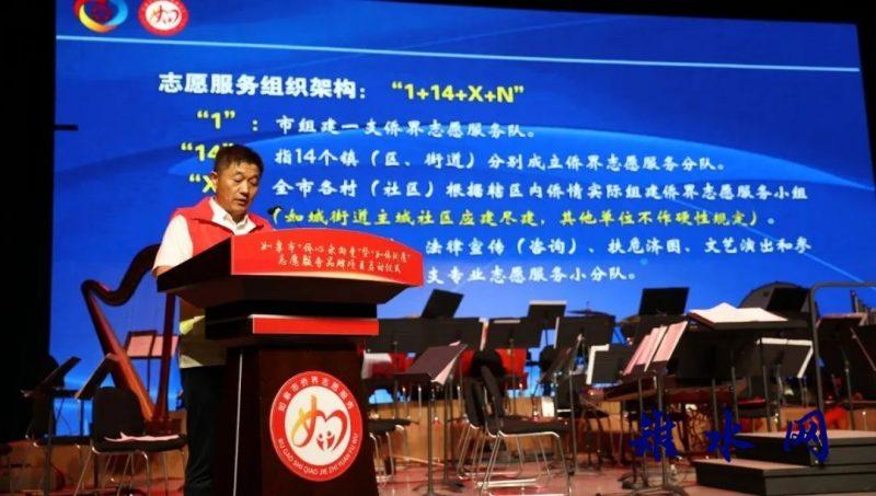 如皋市侨联主席姚大平进行志愿服务品牌项目发布。
