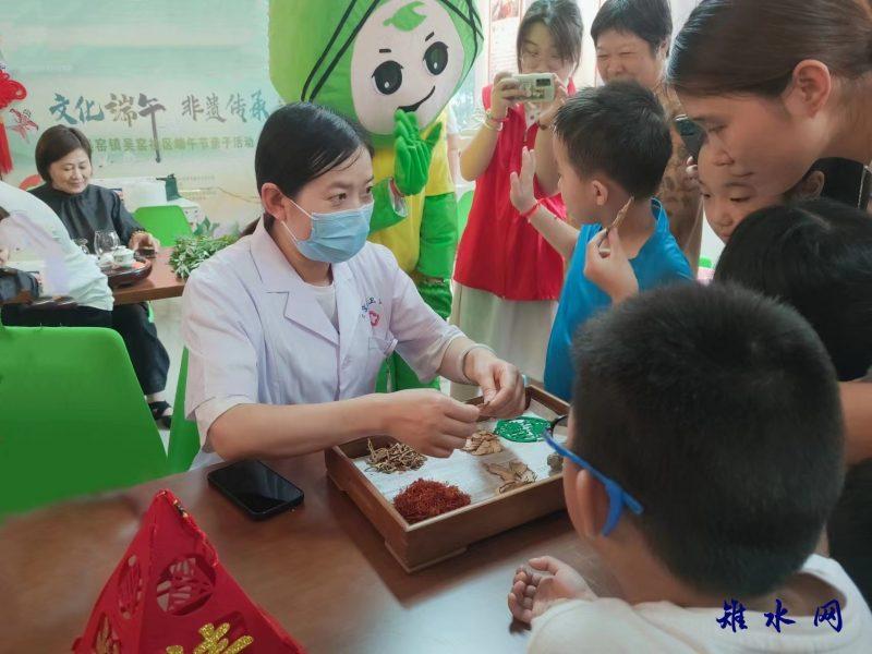 “端午节是纪念哪一位故人?”“端午节有哪些习俗?”“为什么要在端午节佩戴香囊?”社区志愿者通过趣味竞答的方式与孩子们互动暖场,为孩子们讲解端午节的历史由来和习俗,普及节日的意义,让大家感受到了传统文化背后的深刻内涵。