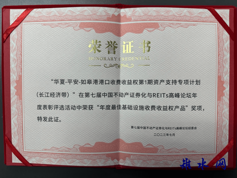 新如皋报讯 7月15日,第七届中国不动产证券化与REITs高峰论坛在上海成功举办。期间,经过组委会前后两个多月的紧张征集、网络投票、专家评审,如皋市交通产业集团苏中国际发行的华夏-平安-如皋港港口收费收益权第1期资产支持专项计划(长江经济带)荣获年度最佳基础设施收费收益权产品金萃奖。