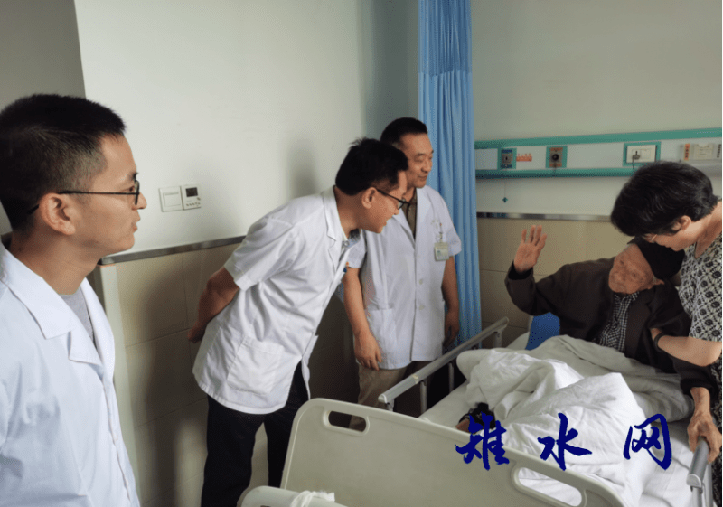 俗话说,“家有一老,如有一宝”,除了物质上的关心,老人更需要的是陪伴和关爱。院部对此次超高龄手术十分关注。手术结束后,院领导一行来到外科病房为老人献上鲜花,祝福老人早日康复。