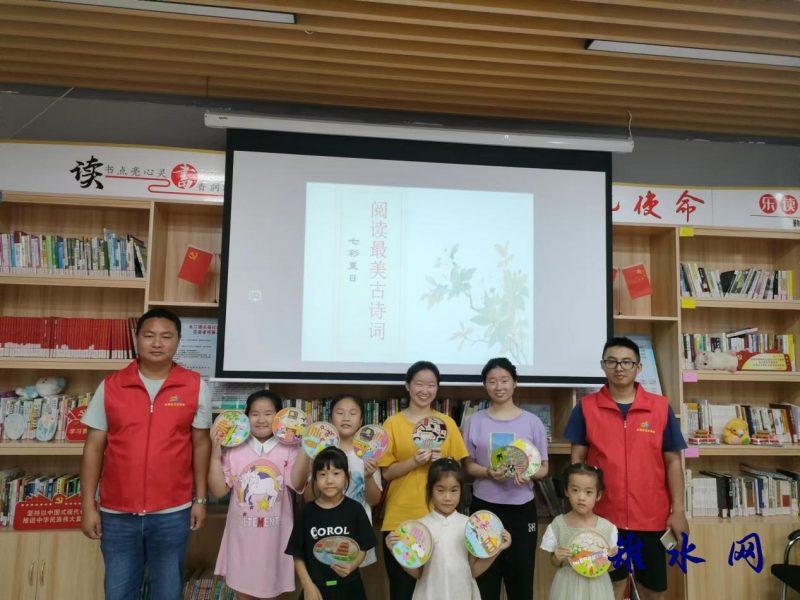 新如皋报讯 “鹅,鹅,鹅,曲项向天歌……”童真清朗的读书声从如皋市长江镇永福书吧内传出,走进书吧,一群小朋友正在凉爽的书吧内饶有兴趣的对着古诗词摆件学习着古诗词。