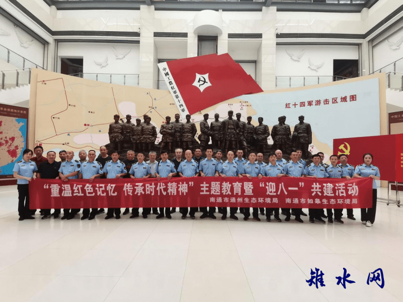 新如皋报讯 近年来,生态环境系统退役军人的队伍不断扩大,工作中,他们发扬“特别能吃苦、特别能战斗、特别能奉献”的铁军精神,为全市生态环境质量的提升做出了突出贡献。为增强广大退役军人的荣誉感、使命感和获得感,“八一”建军节即将来临之际,如皋生态环境局、通州生态环境局联合开展“重温红色记忆、传承时代精神”主题教育暨“迎八一”共建活动。