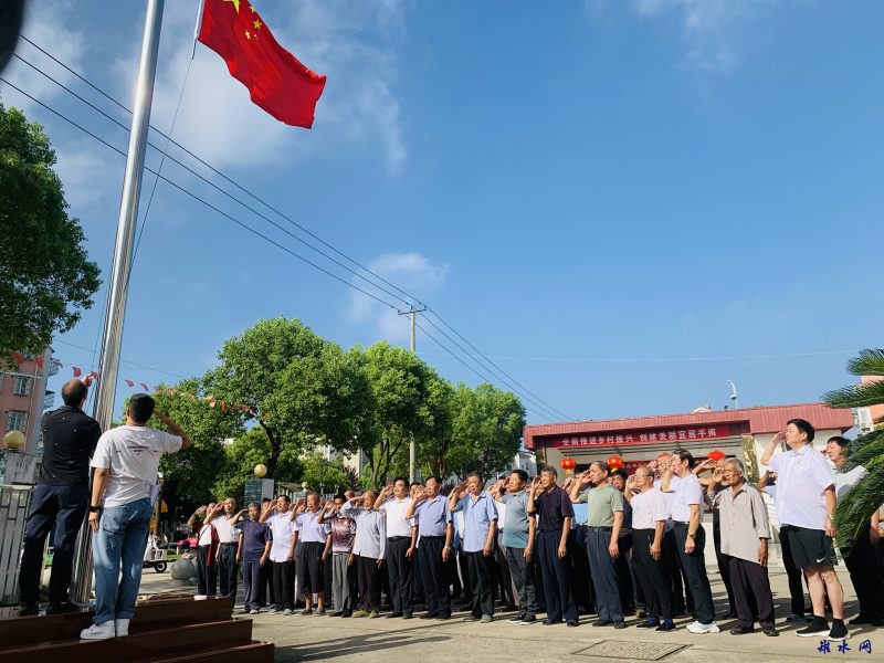 庄严的国歌中,退伍军人们一起面向国旗,唱响国歌;退伍军人里面不乏党员,社区党总支书记带领大家重温入党誓词,在入党誓词中坚定理想信念,不断叩问初心、守护初心,继承和发扬老一辈共产党人的光荣传统,把对党忠诚的铮铮誓言贯穿工作各方面、全过程。