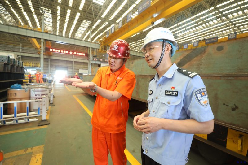 随后,刘书记带领民警们参观了公司的制造车间,民警们实地观看了大桥钢结构的生产现场,近距离感受了中国制造的实力和魅力。