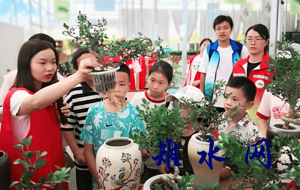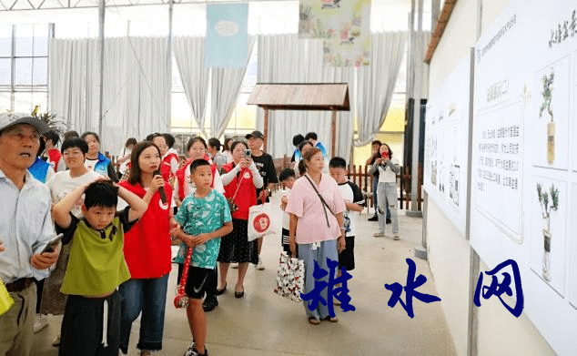 为了让参观者了解“花名堂”的来源,生态志愿者讲解了“花名堂”的发展史,并介绍了“打扮”绿色家园方面的创新动作。近年来,“花名堂”为了让越来越多的绿色盆景走进千家万户,积极发挥本地产品资源和蟠扎技术的优势,推进盆景微型化,标准化,大众化,攻克了盆景土壤易生虫、养护难、没有时间养等一系列的问题,发明了无土栽培小微盆景技术,推出了微型水培盆景,开展了线上直播场景和户外产品场景应用展示,为不同风格、不同元素的庭院绿化带来了绿色样板选项。参观过程中,学生、家长、社区群众认真倾听生态志愿者讲解水栽盆景养护知识,在美景处拍照留影的同时,纷纷感叹--我们的家庭生活环境将会越来越“绿”。生态志愿者还发放生态文明宣传单,组织参观者学习绿色环保知识,努力提升生态文化素养。