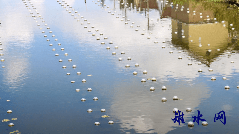 站在吴窑镇沈甸村立南河桥上远眺,波光粼粼的水面上,一个个白色浮球排列得井然有序,闪耀着“珠光宝气”,湖面上不时有鱼儿泛起的涟漪。
