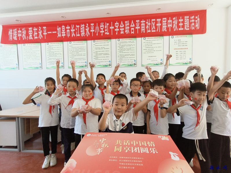 新如皋报讯  皎皎明月意,浓浓中秋情。为进一步加强以爱国主义为核心的民族精神,践行社会主义核心价值观,激发少先队员们的爱国热情,9月26日上午,如皋市长江镇平南社区妇联、镇人大代表联合长江镇永平小学红十字会小学开展“共话中国情 同享团圆乐”迎中秋庆国庆主题活动。