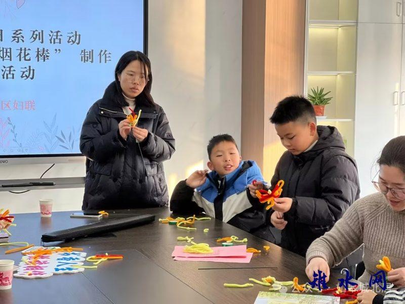 活动最后,大家一起制作扭扭棒烟花,一折一剪、一扭一绕……很快,一朵朵色彩缤纷的“烟花”就做好了,新年仪式感满满。