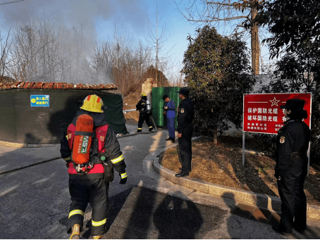 火情就是警情,执法大队迎春中队队长胡碧草立即带队赶赴现场,同时联系城东社区和119消防队前往救援。在到达现场等待救援的过程中,他们查看发现,该地块围墙内垃圾堆里多是枯枝树叶、生活垃圾等易燃物,且周围紧挨着电线杆、变压器,浓烟系垃圾堆被引燃所致,现场还不时传出炸裂的声音,若不及时处置,火势一旦蔓延,后果将不堪设想。为防止火情进一步扩大,城管队员严守现场,疏散附近行人,确保行人远离火场。几分钟后,消防队员到达现场,不到20分钟,明火被全部浇灭。待消防队离开后,城管队员督促社区工作人员要做好后续监管工作,并确保现场无复燃隐患后,回到各自工作岗位。