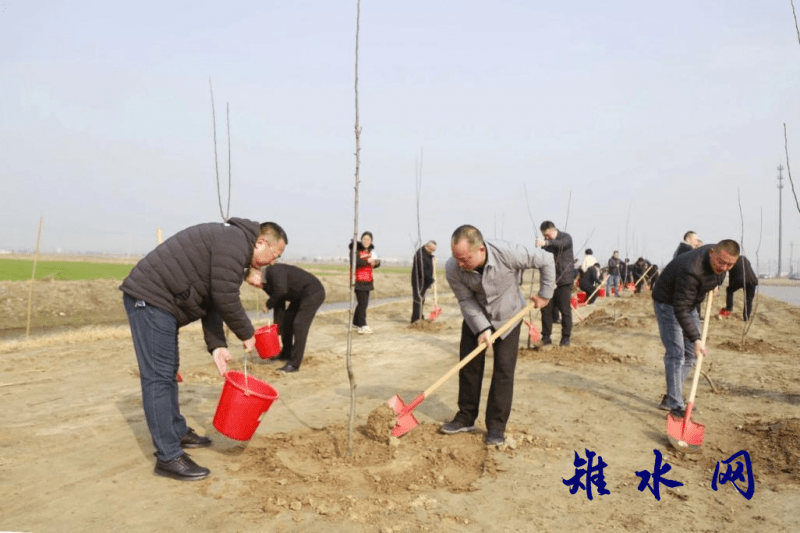3月12日,城北街道机关党员干部代表、各村(社区)书记走进天河桥村25、26组吴家河与群众及志愿者代表一起参加义务植树活动。