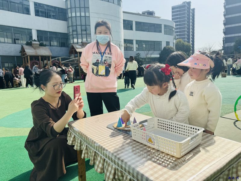 老师们根据小班幼儿的年龄特点从数学认知和自理能力两个方面为出发点,为幼儿搭建了玩中有乐、玩中有学、玩中有得的游戏场景。游戏现场,孩子们在家长的陪伴下,手拿游戏任务卡,迫不及待地去感受一个个新奇、有趣的游戏。叠叠乐、小猫钓鱼、种花等游戏打卡区异常火爆,吸引了不少孩子们前来体验。