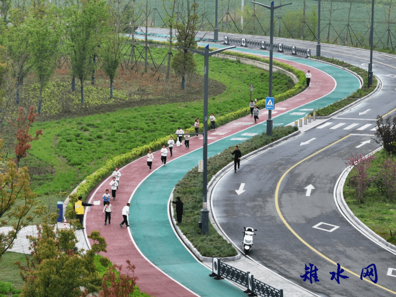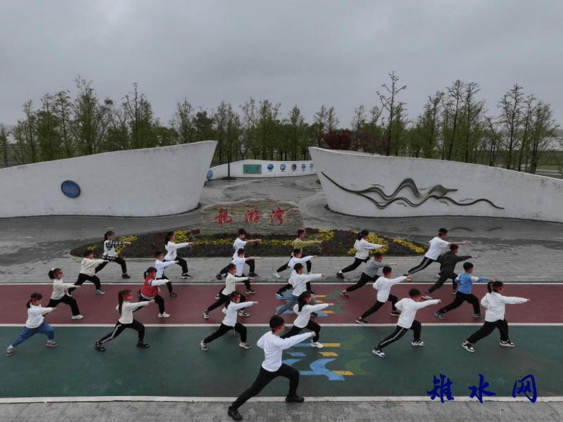 微风拂过龙游湾风景带每个角落,参赛选手们集结于赛道上。在运动员进行曲中,选手们扩胸、拉伸、跳跃,打着军体拳做着热身运动。