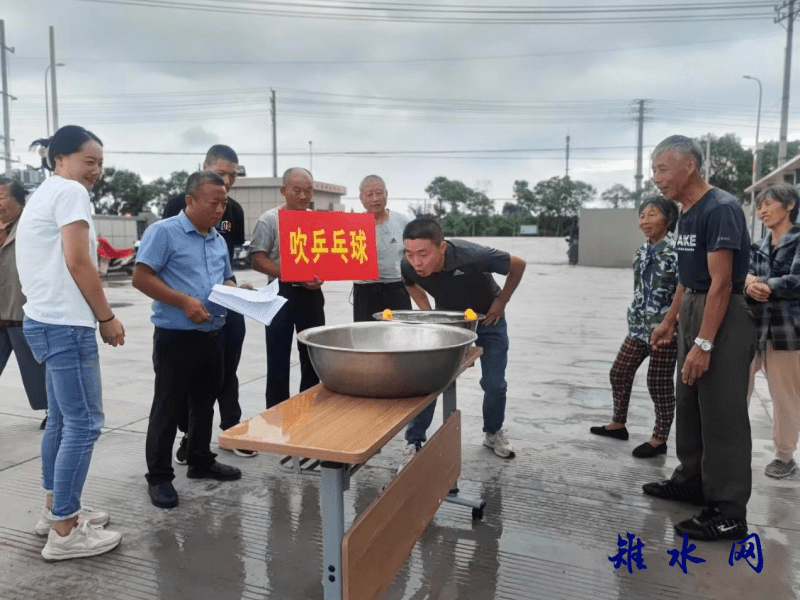趣味运动会比赛有踢毽子、跳绳、乒乓球(男女组)、象棋、男子扳手腕、掼蛋等传统项目,也有搬重物、剥花生、抢凳子、搓麻绳、旱地插秧等特色涉农项目,吸引村民踊跃参与。比赛场内,大家都全力以赴地使着巧劲儿,场外则热火朝天,欢声笑语不断。