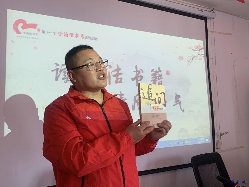 志愿者宗青春向大家推荐了优秀反腐纪实文学作品《追问》,从书籍的内容、中心思想以及廉洁纪律等方面发表自身感悟和见解,党员们通过阅读《共产党人的旗帜》《习近平关于“不忘初心、牢记使命”论述摘编》等优秀廉洁书籍,加深党员干部对文中廉洁含义的理解,将廉洁文化根植在党员干部心中,共同营造“读廉书、谈廉洁、知廉事、重廉行”的良好品行。