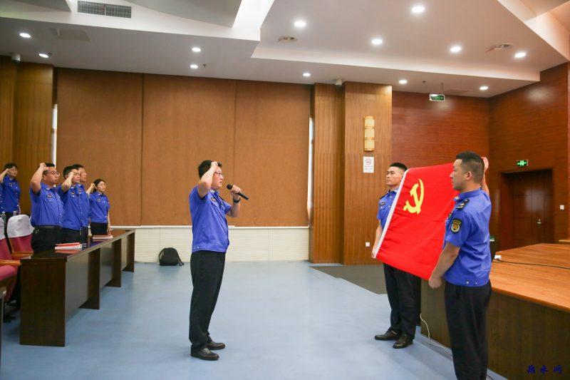 局党组书记、局长黄山虎带领全系统163名党员重温入党誓词,面对鲜红的党旗,全体党员庄严宣誓:“我志愿加入中国共产党,拥护党的纲领……”在这个特殊的日子重温誓词,既是对建党103周年的隆重纪念,也是对全体党员的一次深刻的党性教育,鞭策和激励全体党员不断前行,以更加饱满的热情投身到城市管理工作中去,永葆共产党员的政治本色。