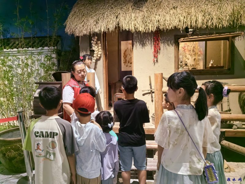 看完绘本剧,孩子们跟着讲解员张炜参观农耕民俗文化馆,“读”农耕文化,“感”家乡变化。“这是石磨,是用来磨面粉或者制作豆腐的重要工具……这是筛子,可以用来晒谷子、晒棉花……这是火钳,以前都是用煤炉烧水,就用火钳夹煤球……”张炜带着孩子们认识农具“老物件”,讲解它们的用途,让孩子们感受农耕工具的变化,感知劳动人民的智慧。平园池村“小小讲解员”郑刘致蕴和刘许笑带领大家参观了农耕文化馆二楼的小人书、老钟表、收音机、旧粮票、陶罐……通过不同年代物件的变化,体会不同时期的生活方式以及人们的思想观念,感受时代发展与变迁。