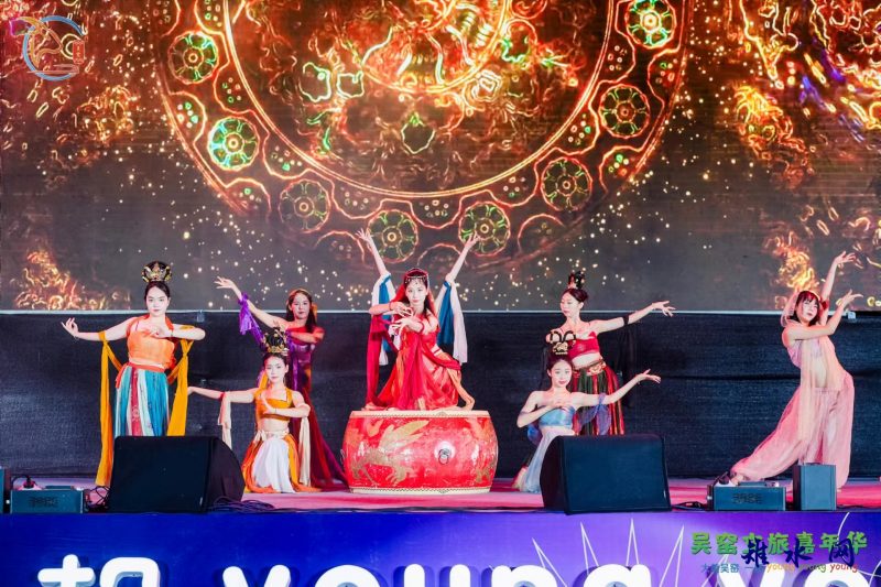 在舞台区,《大美吴窑》古典舞恢弘大气、乐队演出青春活力、DJ电音说唱嗨翻全场……各类表演轮番上演,既弘扬传统文化,又融入现代元素,美食与音乐结合,传统与流行邂逅,给观众游客们带来极致的视听体验。演出中穿插趣味横生的互动问答环节,主持人现场提问关于吴窑的历史、文化常识,进行大屏游戏互动,激发了现场观众的参与热情,将活动的氛围烘托至高潮。