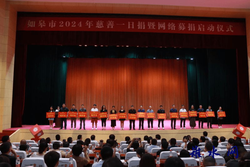 新如皋报讯 携手慈善同行,共创美好生活。8月28日下午,如皋市2024慈善一日捐暨网络募捐启动仪式在行政中心礼堂隆重举行。市四套班子全体领导、法检两长、各镇(区、街道)主要负责人、慈善分会及市属各部门、国有企业主要负责人出席启动仪式。