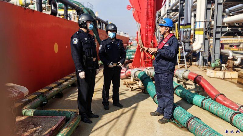 同时,针对化工码头内部线路管道多、安全要求高等特点,推行闭环式出入境边防检查勤务,加强上下船舶人员管理,确保船舶作业安全顺利开展。