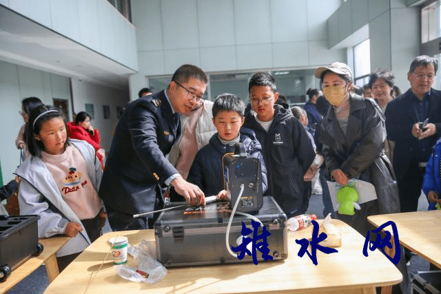 “哇,无人机成功采了一瓶水,太厉害了!”在无人机演示现场,小朋友们饶有兴趣地观看无人机飞行采样。“在环境监测领域,无人机得到越来越广泛地运用,比如排污口排查、秸秆禁烧,还能帮助我们到河流中央取水,通过这台电脑可以直接看到无人机360度拍摄的实时画面,通过变焦在较远处也能拍到非常清晰的画质。”工作人员向大家介绍。