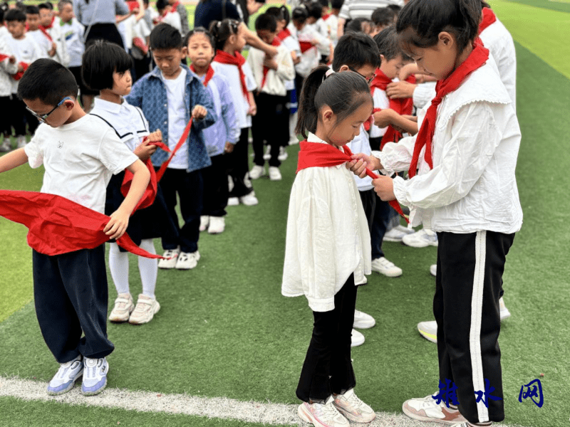 仪式上,学校少工委主任薛华校长为新建中队辅导员颁发聘书,少先队员代表为辅导员佩戴红领巾并授予中队旗。薛校长在致辞中寄语新队员:“红领巾是红旗的一角,更是奋进的旗帜。希望你们牢记誓言,争做有理想、有本领、有担当的强国栋梁!”