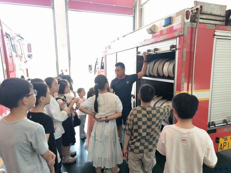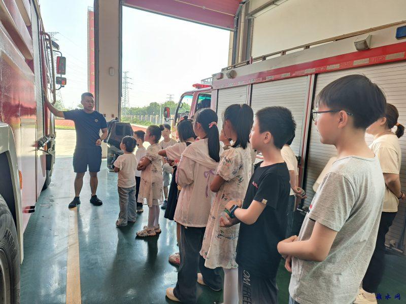 在消防员的引领下,孩子们首先参观了不同类型的消防车辆和各类专业救援装备,认真聆听了讲解员对消防器材功能及使用场景的详细介绍。面对高大威武的消防车和种类繁多的设备,孩子们表现出浓厚的兴趣,纷纷提问互动,现场气氛异常热烈。