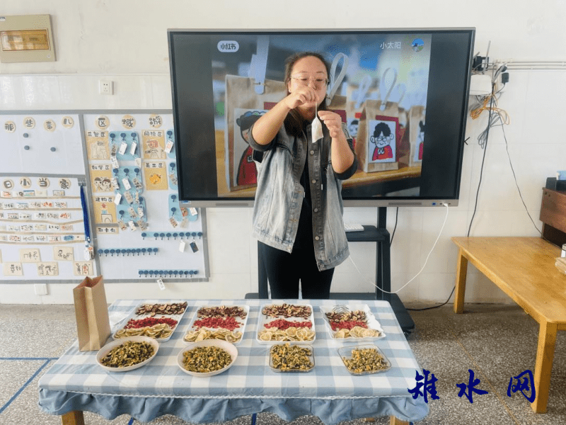 小班“百家米纳福”温情启幕,孩子们从家中带来少量米粮,逐一倒入班级的专属箩筐中。家长志愿者边引导操作边讲解传统寓意,让“分享祈福”的理念在孩子们心中扎根,用质朴米粮为长辈攒下满满祝福;中班幼儿化身“暖心小工匠”,在家长志愿者的指导下制作足浴包。辨识艾草、生姜片等天然食材,亲手装入包装袋、系上彩绳、贴上爱心贴纸,每一步都藏着对长辈的牵挂,盼着用暖心足浴为长辈驱散疲惫;大班“养生茶作坊”里,孩子们认识枸杞、红枣、胎菊、柠檬片等食材,按比例搭配封装,在动手间了解传统养生知识,为长辈定制专属健康茶。