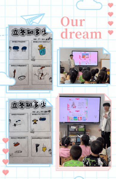 通过调查表、绘本、视频等多种活动形式,孩子们了解立冬节气的由来、气候特点、风俗习惯等相关节气知识,知道了立冬的来历及传说,进一步了解立冬养生等常识性的知识,感受到了节气传统文化的魅力。