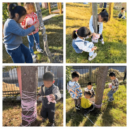 我和我的大树朋友……天气变冷,我真的很担心幼儿园的大树,它们会不会也很冷呢?可以给它们做件衣服,这样就暖和多了。对孩子而言,万物皆有趣。