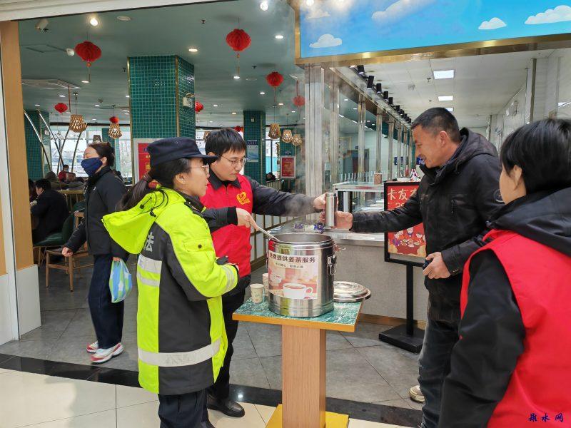 “师傅,喝杯姜茶暖暖身子,雪天路滑,一定要注意行车安全。”一声声亲切的问候、一份份温暖的关怀,让奔波在风雪途中的人们倍感温暖。服务点还为群众提供路况咨询、路线指引、应急药品等便民服务,耐心解答疑问,提醒驾驶员谨慎慢行,确保出行安全。