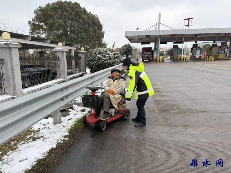 新如皋报讯 1月20日,强冷空气席卷江苏,雨雪交加,气温骤降。当日下午,江省交通综合执法局沿海支队第四大队执法人员巡查途经G15沈海高速丁堰收费站出口处时,发现一位老人独自在寒风中徘徊,神情迷茫,正试图进入高速公路。