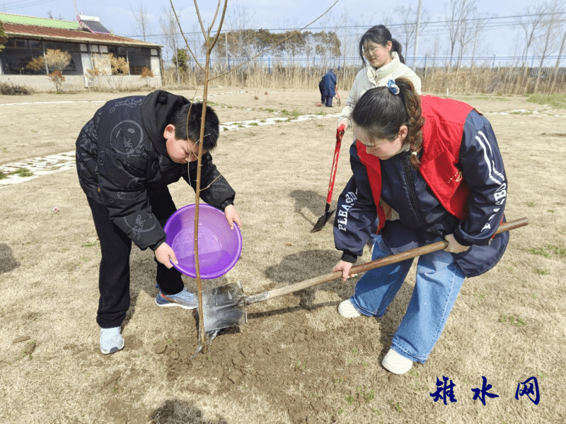 随后,大家手持铁锹、树苗来到户外植树点,分工协作、干劲十足。扶苗、培土、浇水,每一道工序都细致认真,孩子们在大人的指导下,亲手种下一棵棵树苗,用汗水浇灌绿色希望。现场一派热火朝天的劳动景象,新栽的树苗在春风中挺立,为春日的村庄增添了勃勃生机。