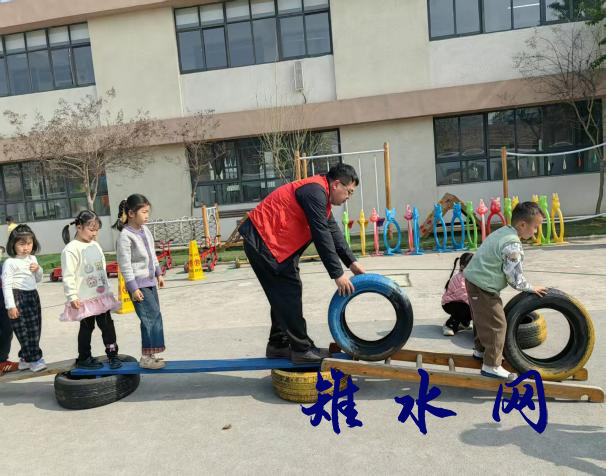 活动现场,退伍军人叔叔化身“体能教练”,结合军人训练特色,带领孩子们开展了丰富有趣的户外体能游戏。在平衡挑战区,叔叔耐心守护,引导孩子们踏上轮胎搭建的平衡木,一步步稳稳前行,锻炼平衡感与专注力;钻爬跨越区里,孩子们在叔叔的鼓励下,勇敢翻越障碍垫、钻过“封锁线”,在奔跑、攀爬、跳跃中挥洒汗水,不仅强健了体魄,更是直观感受到了军人坚韧不拔、奋勇向前的精神风貌。一张张稚嫩的小脸上洋溢着自信与快乐,操场上充满了孩子们的欢声笑语。