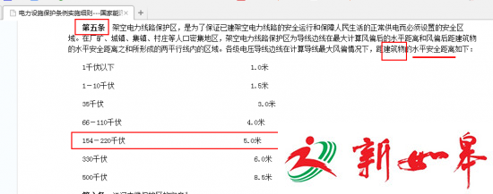 而且《电力设施保护条例实施细则》第五条 也更是明确规定了22万伏高压线距建筑物的水平安全距离要达到5米。(无明确规定建筑物的高矮,所以高压线理应当离我家房屋水平距离5米)。而且谁也不能保证这线不会掉下来,触死人怎么办,当时现场交涉的时候,一个自称是供电局的人说他们买了保险,天啦,明显把老百姓的命不当回事,感觉有钱就能解决似得。而且中国一直沿用的国际卫生标准只要达到100微特斯拉就是安全值了,瑞典跟英国早就将标准提高到0.2微特斯拉,研究了超过0.2就会诱发白血病、癌症等毛病是正常的4倍水平,这只是些文献参考,但是从安全角度,还是按照《电力实施保护条例实施细则》法律条款第五条,离我家水平距离达到5米。而且我家跟邻居家之间还是有空间跟空地方可以走的,为什么一定要从我家房屋顶上经过???