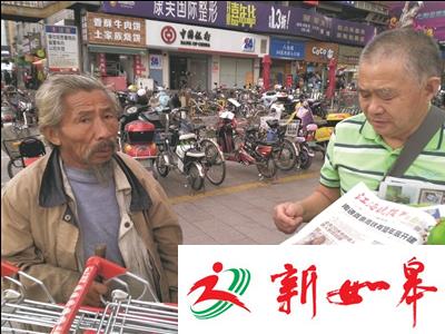 “晚报吗?我找到做好事的流浪老汉了!他正在大润发超市门前的长条凳上休息。我现在已经将他挽留住了,你们快来!”